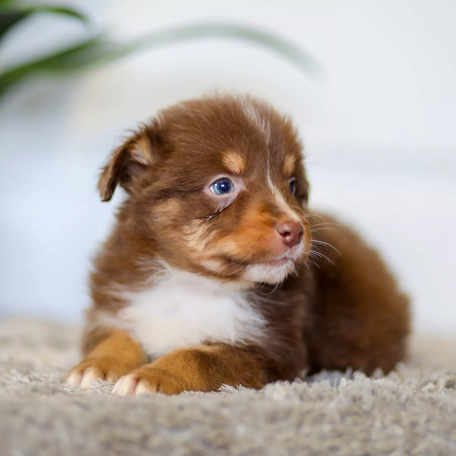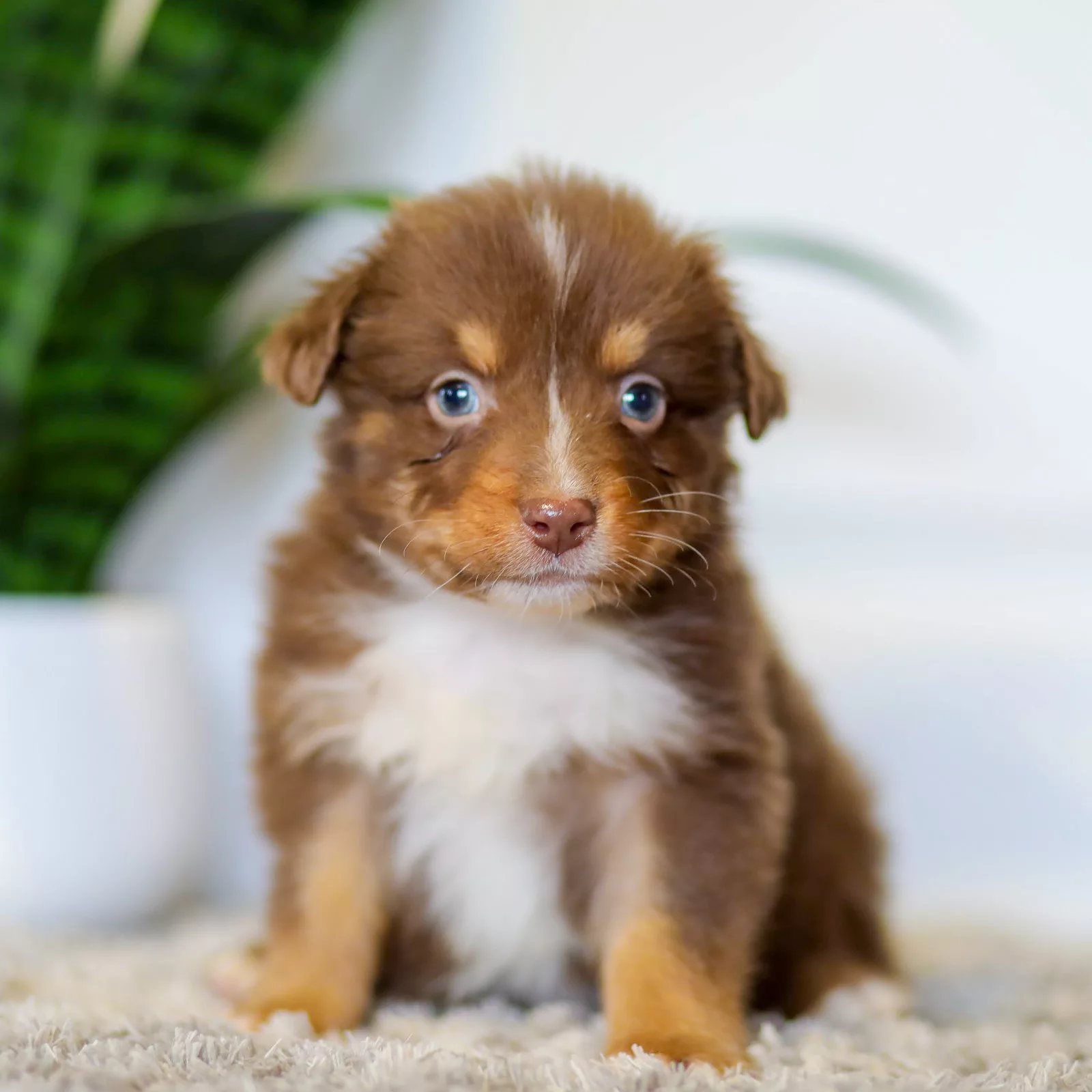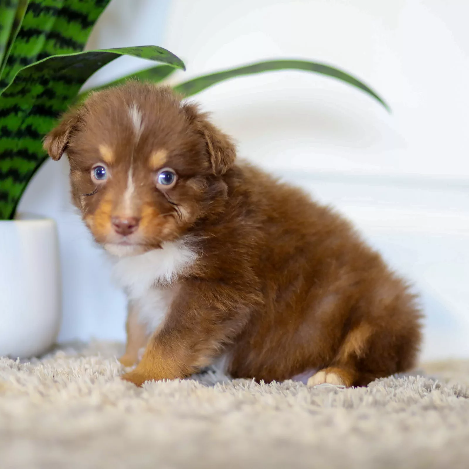 Ozzy is a striking Red Tri male Australian Shepherd with a bold spirit and a lovable, loyal heart. His rich copper tones, expressive eyes, and confident posture reflect his sharp intelligence and readiness for adventure. Energetic and enthusiastic, Ozzy thrives on activity—whether exploring the outdoors, learning new tasks, or enjoying interactive play. Beneath his lively exterior, he’s deeply affectionate and devoted, forming strong bonds with his people. Ozzy brings warmth, excitement, and unwavering companionship to every moment.
