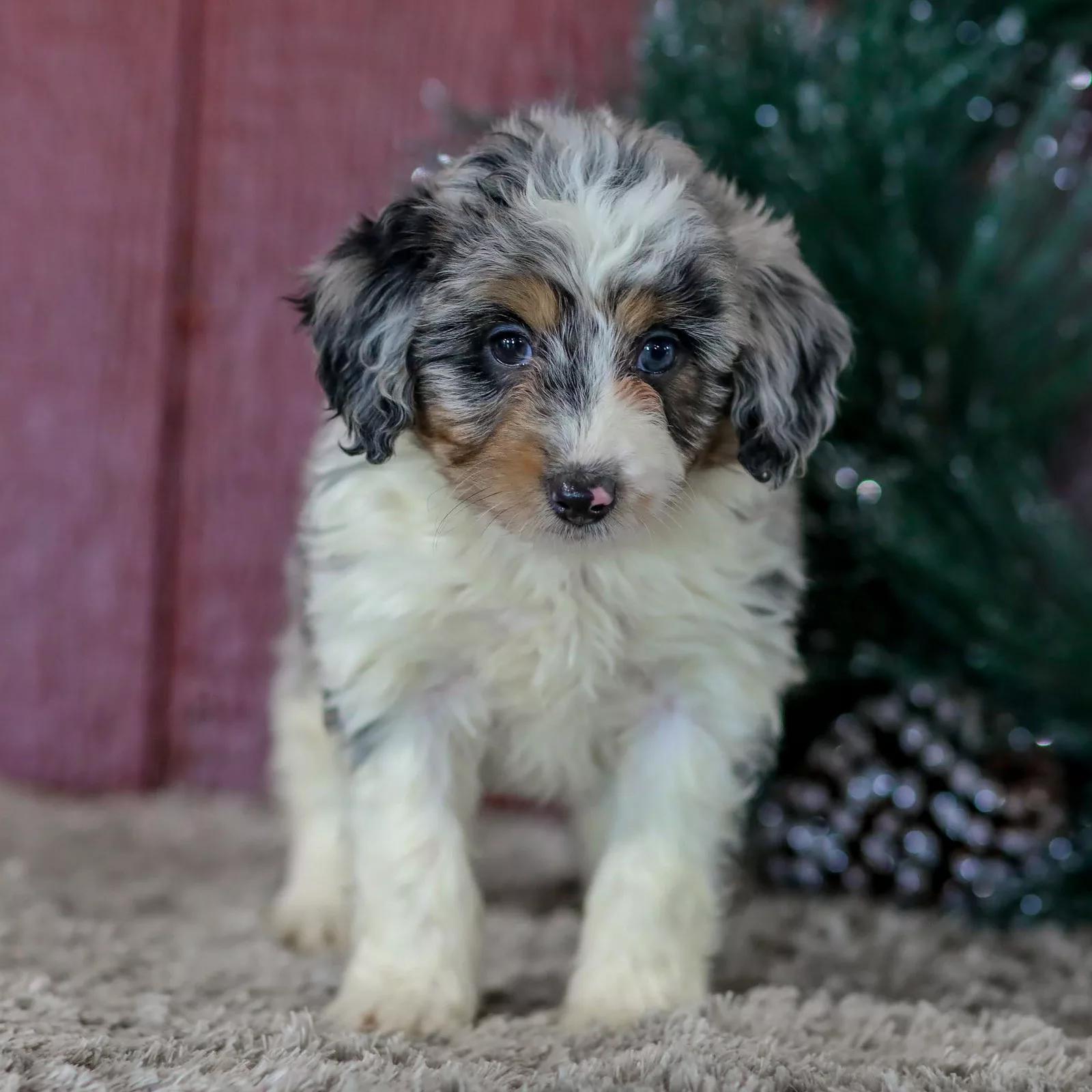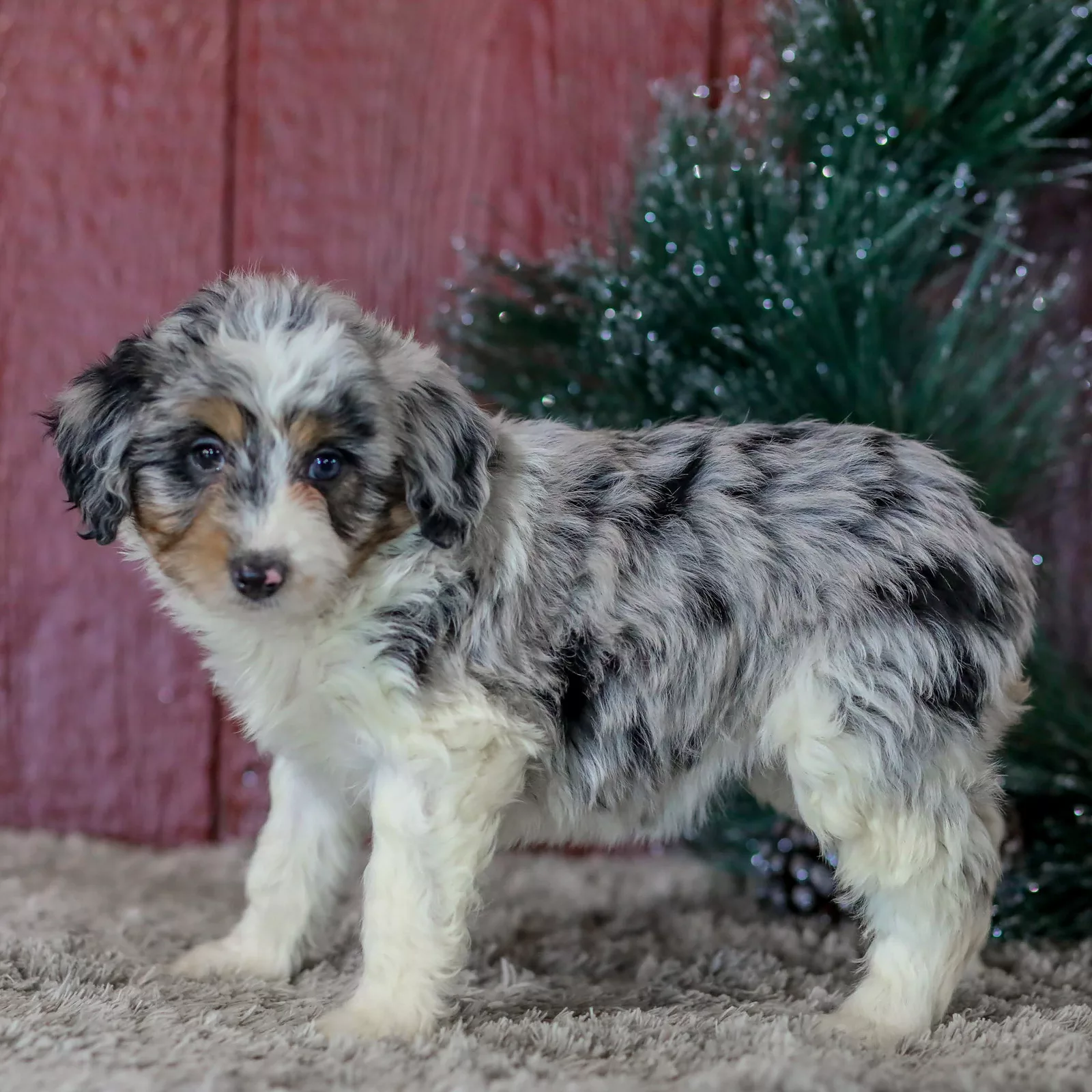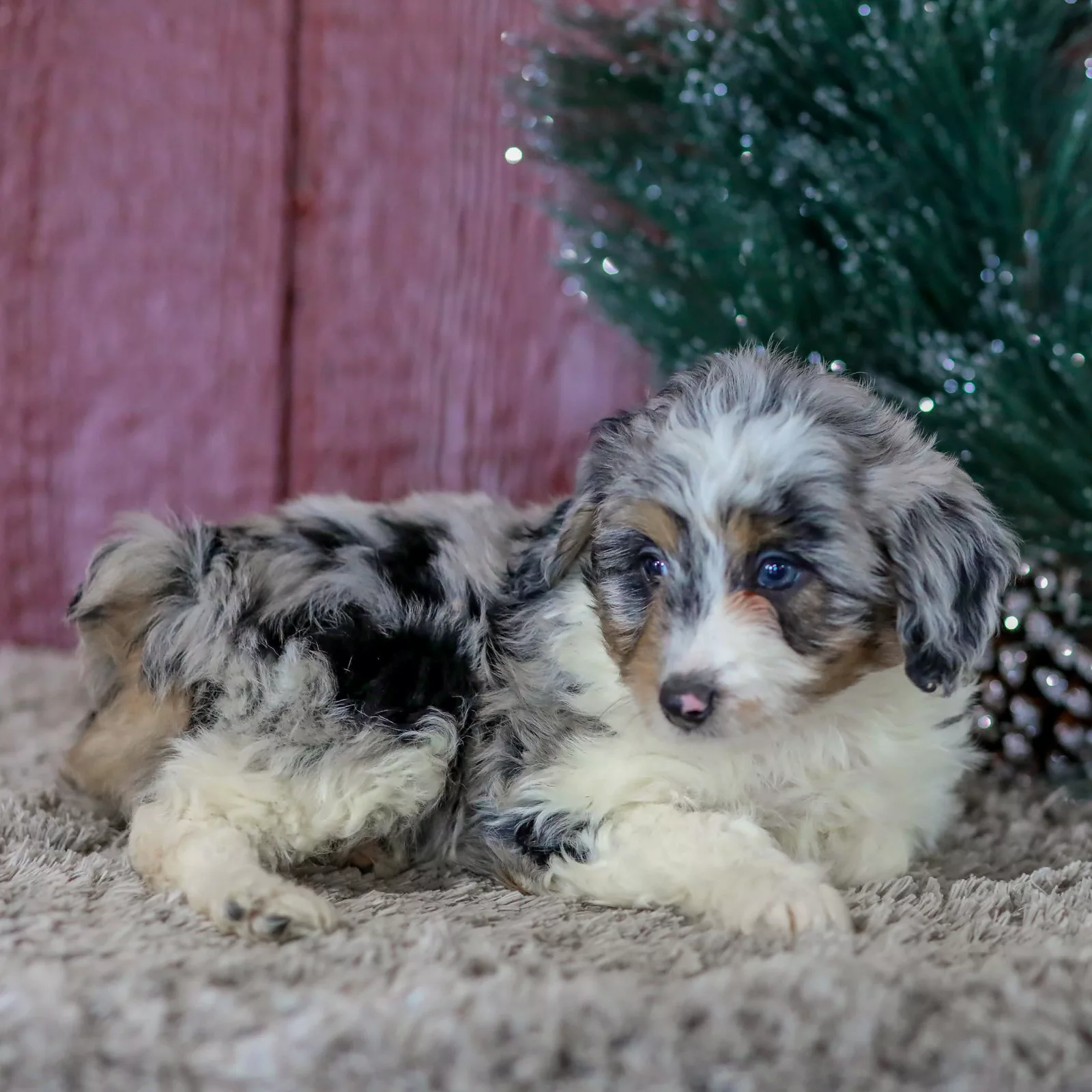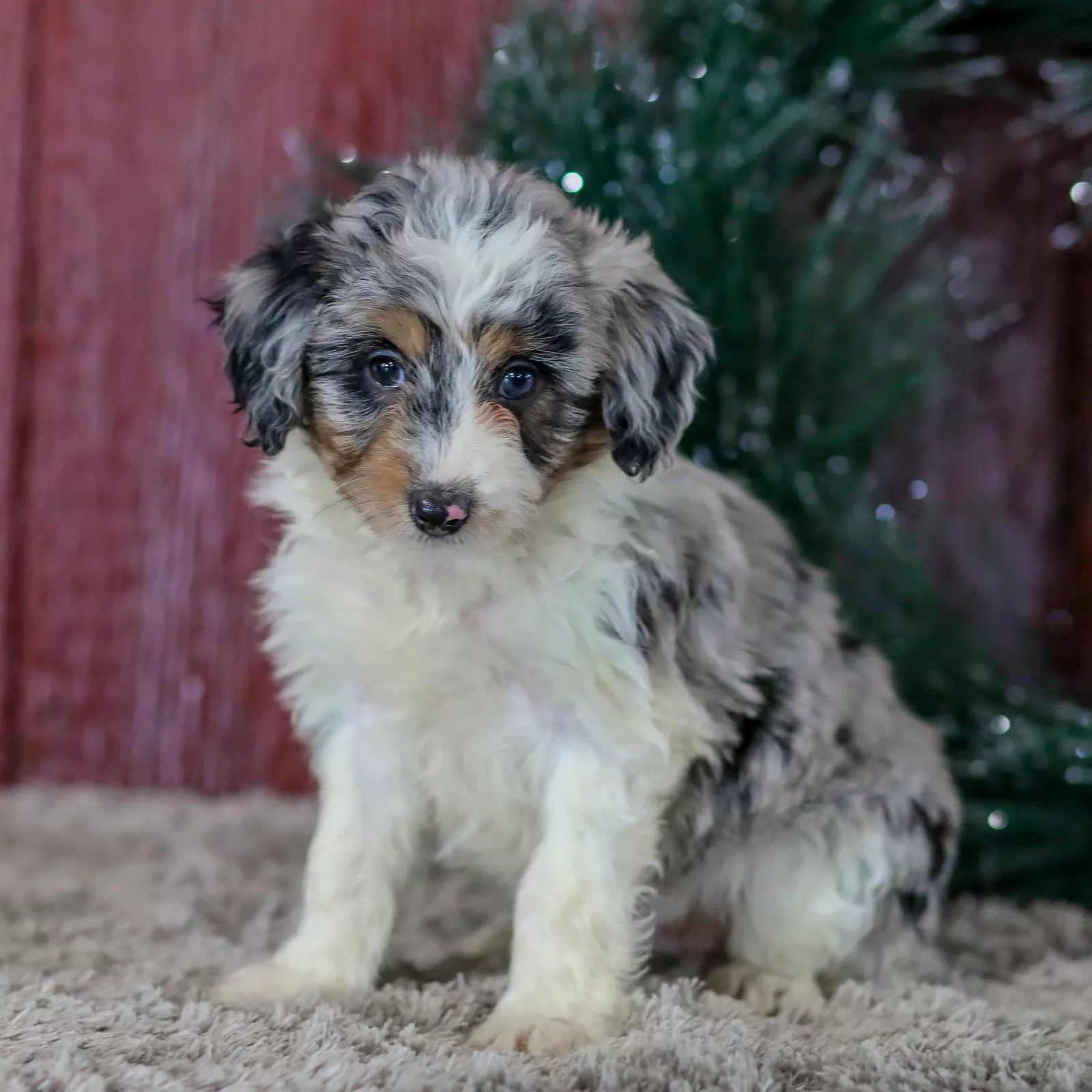 Meet Sasha, a stunning Blue Merle female Mini Aussiedoodle with a heart as beautiful as her coat. Intelligent, affectionate, and full of playful charm, Sasha loves learning new tricks, cuddling close, and exploring the world by your side. Her gentle nature and bright eyes make her an instant favorite. Whether she’s romping outdoors or relaxing at home, Sasha brings joy, loyalty, and endless love to every moment with warmth, curiosity, confidence, sweetness, energy, devotion, smiles.